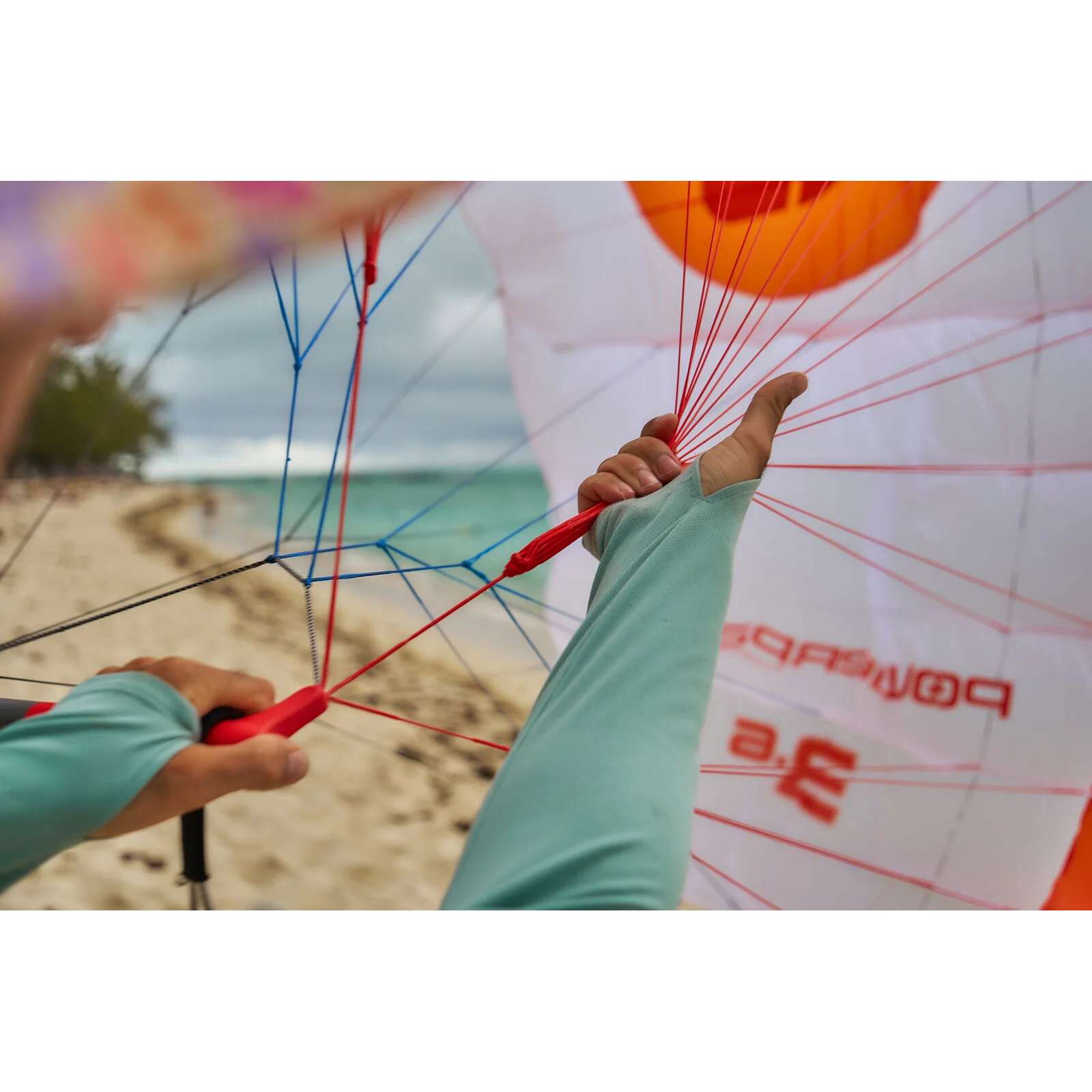 Les lignes de bridage courtes offrent une connexion plus directe à l'aile tout en permettant un rangement et redéploiement ultra-rapides. Le riser frontal central (excluant les lignes de wingtip) réduit drastiquement les efforts. Le nouveau matériau de bridage avec revêtement spécial assure une manipulation fluide et sans irritation. Les Spanwise Bridge Lines distribuent la charge uniformément.