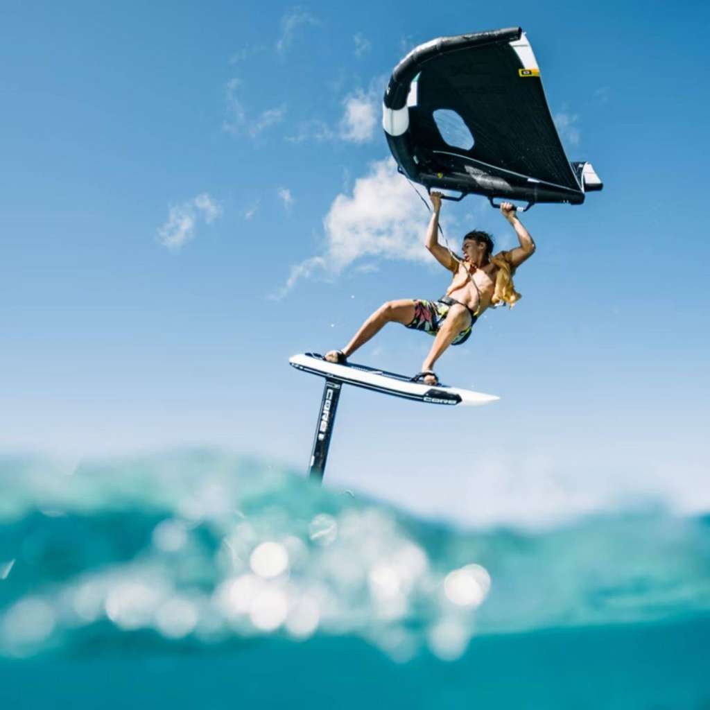 Hadou Brunner teste le F-One SK8 V2 750 cm² : carving, construction carbone améliorée, avis wingfoil et surffoil.