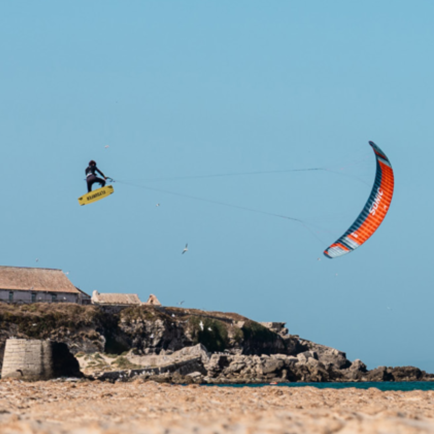 La Sonic 5 a été conçue pour un programme clair : Big Air, Airtime et Kiteloop. Dès les premiers bords, la puissance du lift impressionne. Chaque saut est une véritable catapulte vers le ciel, avec une sensation de hauteur et de durée en l’air qui surprend agréablement. On comprend rapidement que cette aile est taillée pour repousser ses limites et rechercher la performance en saut.
