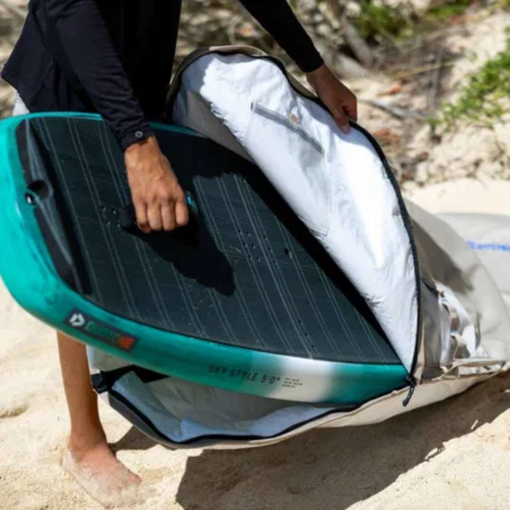 Avec son ouverture spécialement adaptée, le Wing Boardbag Single 2026 vous permet de ranger votre planche sans démonter le foil. La fente intégrée est pensée pour accueillir le mât et les ailes déjà montés, un vrai gain de temps à chaque session. Plus besoin de démonter et remonter à répétition, votre matériel reste prêt à l’emploi et parfaitement protégé.