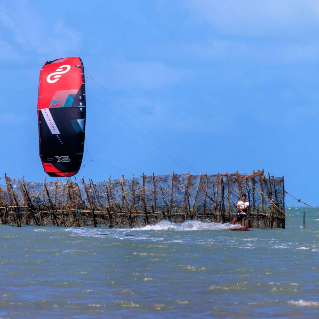 Ce qui distingue vraiment l'XS V5, c'est sa connexion directe avec le rider. Le bridage Eleveight offre un retour d'information constant et précis. Vous sentez exactement ce que fait l'aile, à chaque instant. Cette précision vous permet d'engager plus fort, plus tôt, avec la confiance que l'aile répondra exactement comme prévu.
