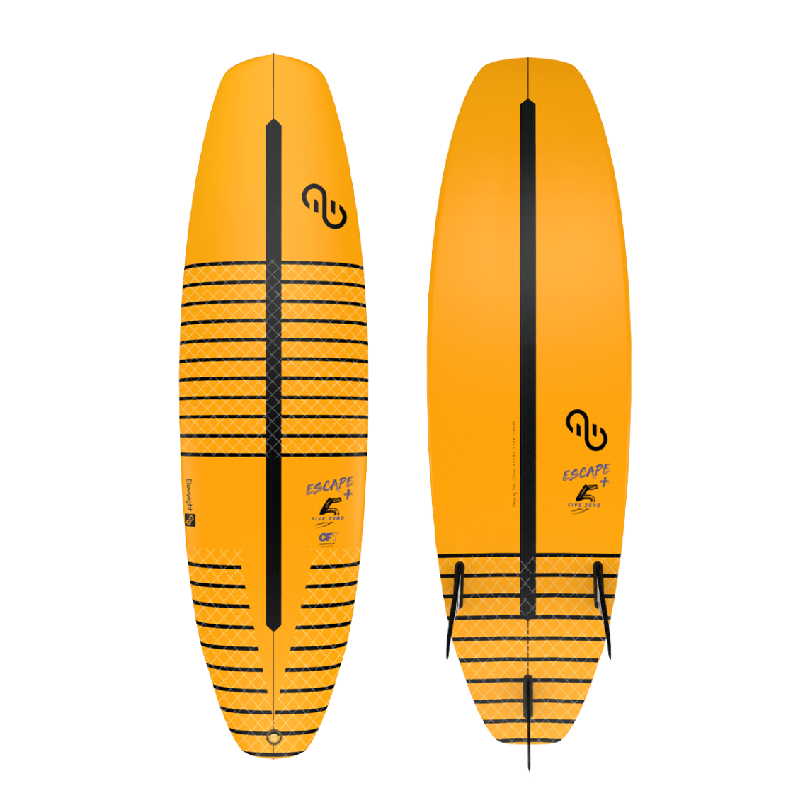 La Escape + intègre un noyau en mousse PU de densité moyenne, renforcé par une latte en bois. La planche est stratifiée en polyester avec une grille en Innegra/carbone, offrant ainsi une résistance accrue et une longévité remarquable. Le fond concave unique génère une vitesse impressionnante et une conduite dynamique, tandis que les boîtiers de dérives renforcés assurent une stabilité et un contrôle optimaux, même lors des atterrissages les plus difficiles.