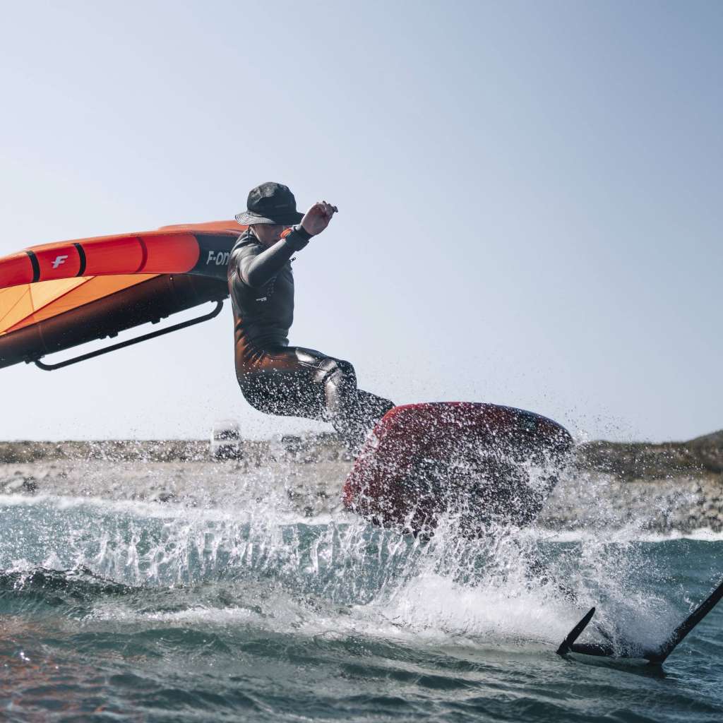 En surf foil, le SK8 V2 excelle dans les prises de carre et permet d’exploiter chaque section de la vague avec fluidité et contrôle. Il se montre tout aussi performant en wingfoil, où sa capacité à rester dans la pocket de la vague facilite les enchaînements sans effort.