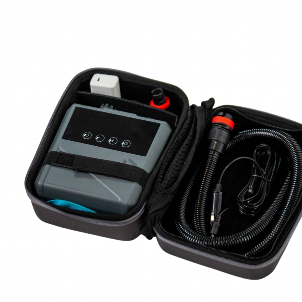 La batterie de 5200 mAh (11,1V / 57,7 Wh) permet de gonfler jusqu'à 10 kites de 9m², 8 wings de 5m² ou 5 SUPs sur une seule charge.