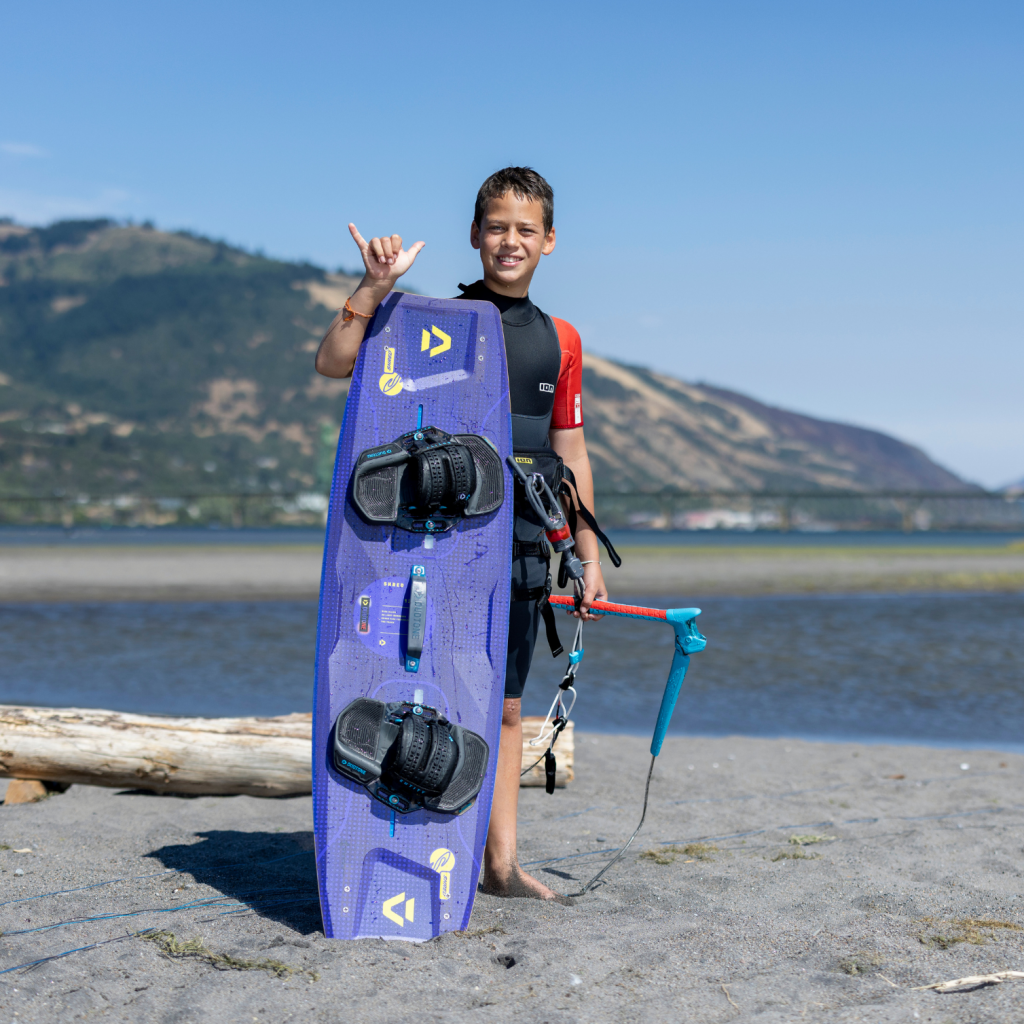 Planche de kitesurf conçue pour les jeunes riders et groms.