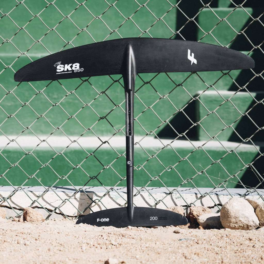 Le F-ONE SK8 V2 est disponible en plusieurs tailles : 650, 750, 850, 950 et 1050 cm², adaptées à différents styles de navigation et niveaux de pratique, permettant à chaque rider de trouver le foil qui lui convient.